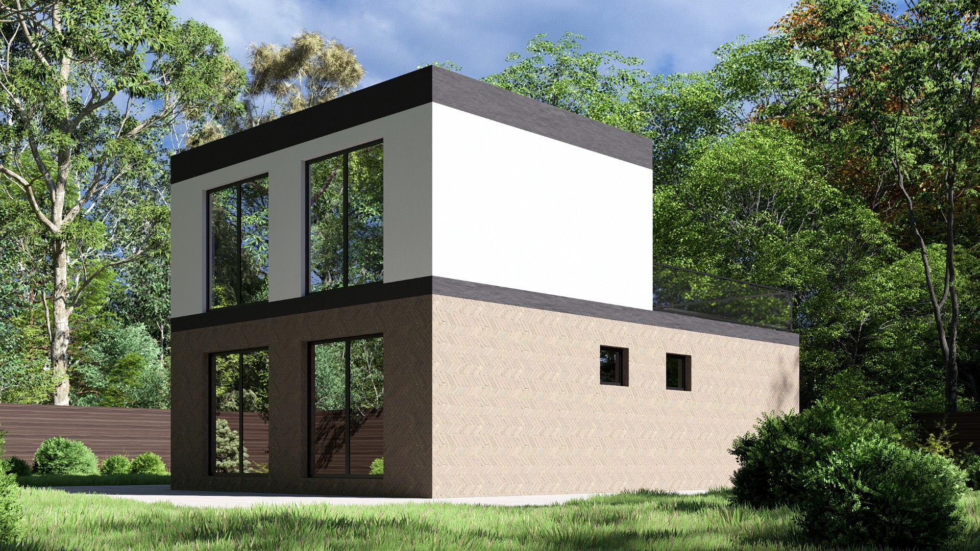 Фундамент + стены + крыша + окна + двери + техническая лестница